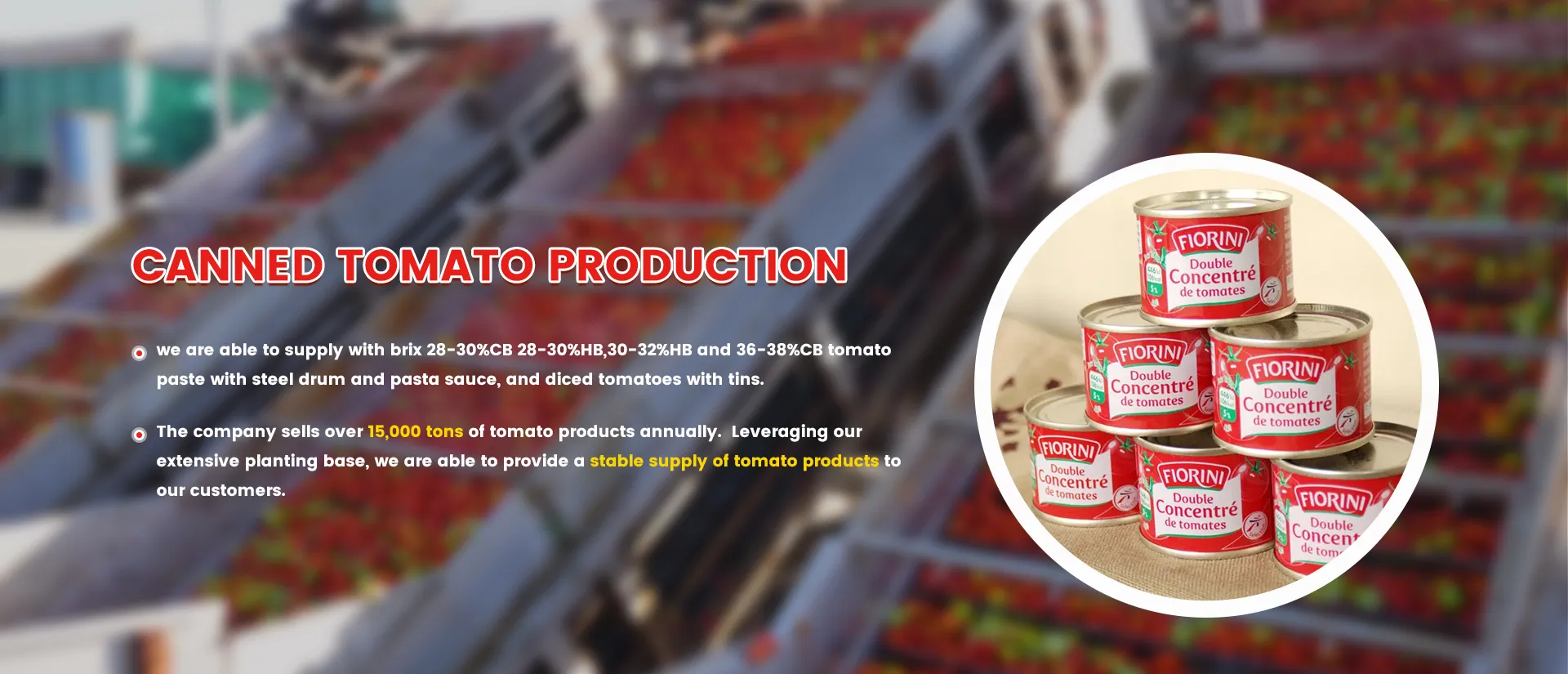 The company sells over 15,000 tons of tomato products annually. Leveraging our extensive planting base, we are able to provide a stable supply of tomato products to our customers.